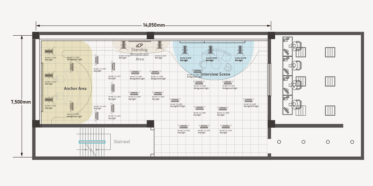 To ensure the studio's lighting effects are optimal, the SWIT Lighting Engineering Department utilized 20 SWIT 120W studio panel lights and 8 SWIT 100W studio fresnel lights. These advanced lighting fixtures not only provide highly uniform light but also boast excellent color reproduction, creating outstanding visual effects in the studio and ensuring each scene presents the best image quality.